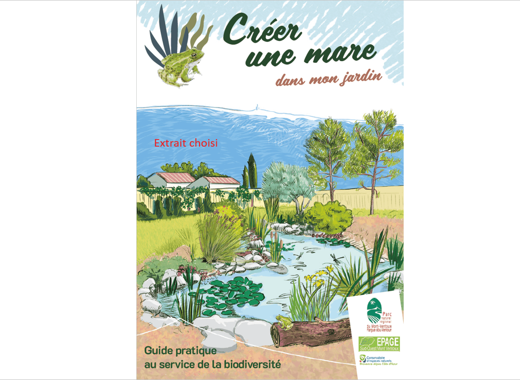Inspiré de la brochure : "Créer une mare dans mon jardin" du PNR du Mont Ventoux, EPAGE Sud-Ouest du Mont Ventoux et CEN PACA
